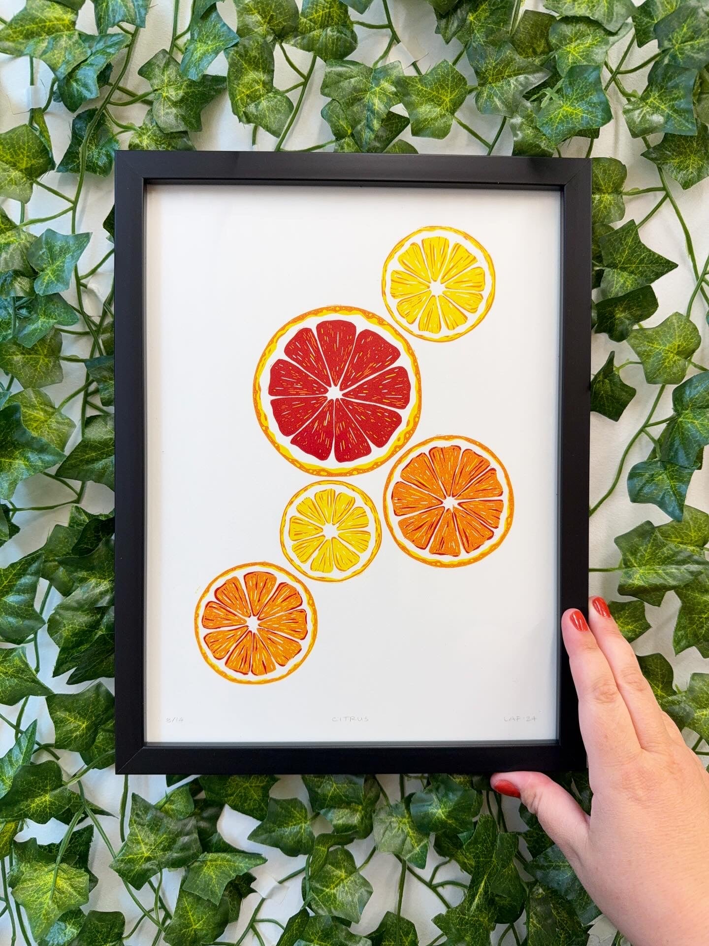 Who doesn't love citrus? Whether you like the tartness of lemon or the sweetness of an orange, this juicy print is here to brighten your day.
